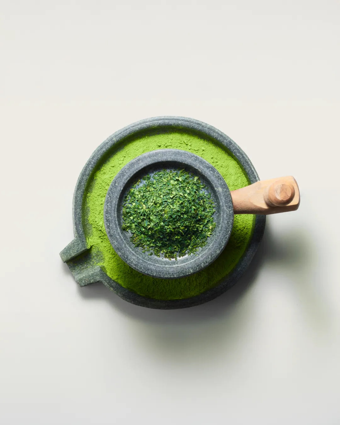 Matcha powder was actually the original way tea was consumed in Japan. This is a holdover from China, where tea leaves were compressed into bricks to be ground and mixed into water. The status of matcha powder was really elevated due to its use in the Japanese tea ceremony, the ritualized preparation of matcha tea according to a strict set of rules and principles.