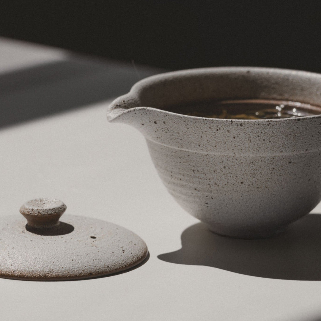 Tout comme le corps du shiboridashi tokoname est extrêmement large et plat, le couvercle du shiboridashi l'est également, ce qui lui permet de s'emboîter parfaitement dans la base et de former un joint étanche lorsque vous versez le thé. Comme la théière est composée d'un couvercle et d'une base, il existe naturellement des similitudes entre le tokoname shiboridashi et le gaiwan. L'une des principales différences réside dans le fait qu'avec le gaiwan, vous devez incliner légèrement le couvercle afin de créer un espace permettant à l'eau de s'écouler tout en laissant les feuilles derrière elle. Avec le tokoname shiboridashi, l'espace est déjà créé vers le bec verseur, ce qui permet de verser l'eau de manière uniforme.