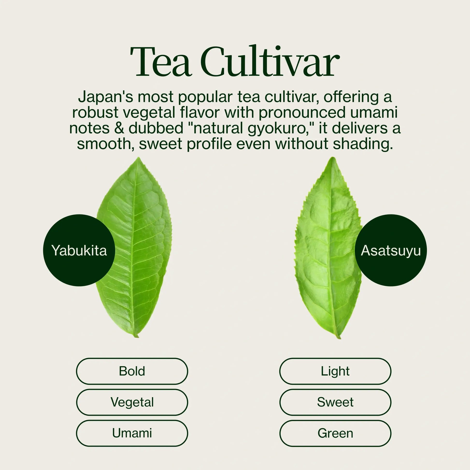 The cultivars used to produce this shizuoka sencha are the yabukita and the asatsuyu.